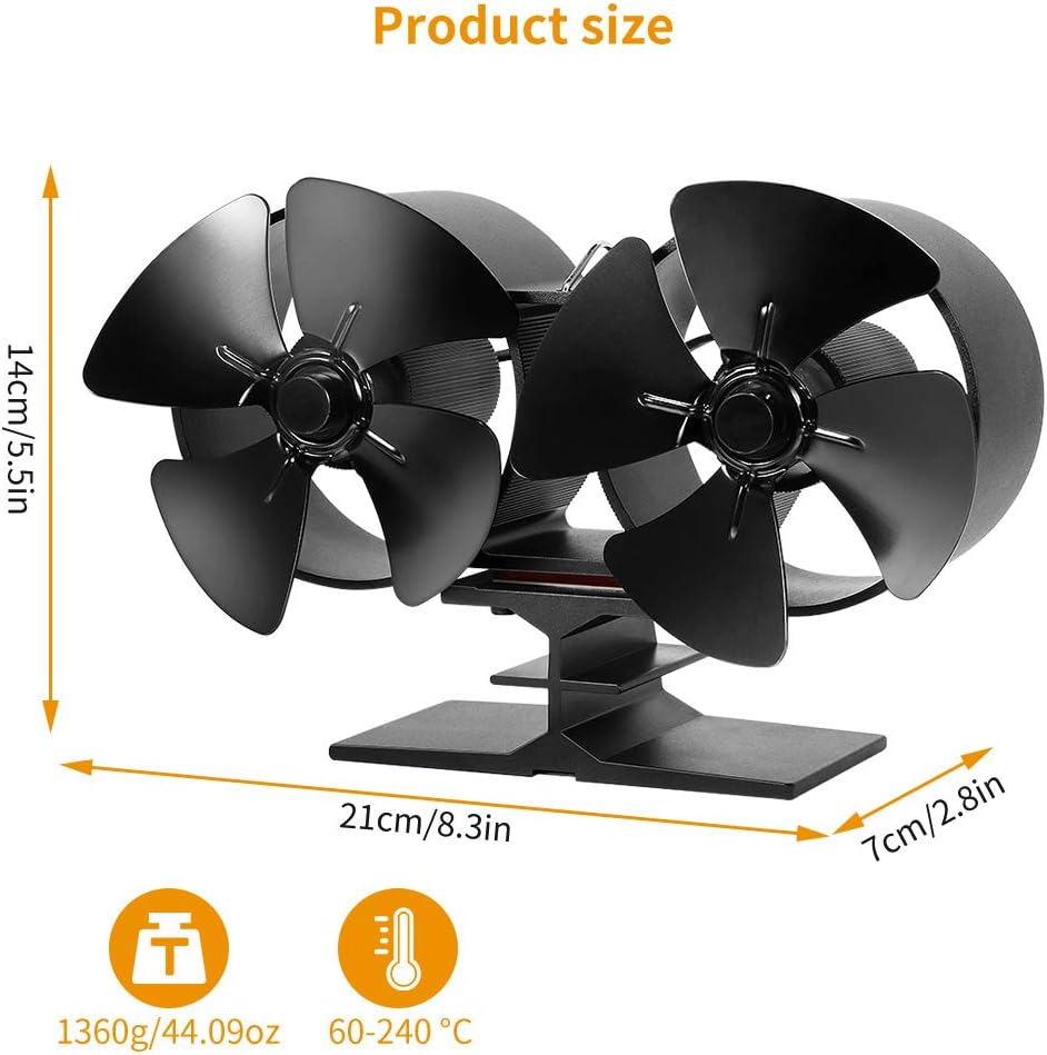 Circolazione Del Calore Del Bruciatore A Legna Ventilatore Della Stufa A 4 Pale Debeme Ventilatori Del Bruciatore Nero Ventilatore Silenzioso A Doppia Testa Alimentato A Caldo Fai Da Te Accessori Per Caminetto