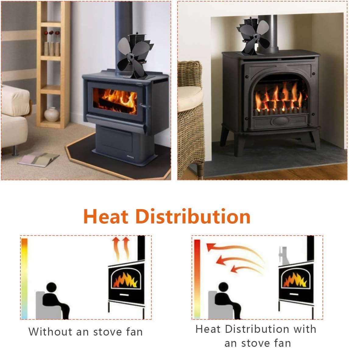 Nero Alimentata A Calore Ecologica Grande Spazio Per Camino Bruciatore A Legna Silent Ventola Per Stufa 4 Pale Appendibile Caminetti E Accessori Casa E Cucina