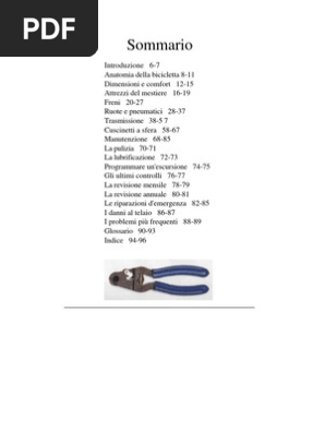 Anatomia della bicicletta 8-11 Dimensioni e comfort 12-15 Attrezzi del mestiere 16-19 Freni 20-27 Ruote e pneumatici 28-37 Trasmissione 38-5 7 Cuscinetti a sfera 58-67 Manutenzione 68-85 La pulizia 70-71 La lubrificazione 72-73 Programmare unescursione 74-75 Gli ultimi controlli 76-77 La. Usa codice FREEBK per spedizioni gratis da 19. Up to 2 cash back elettrica.
