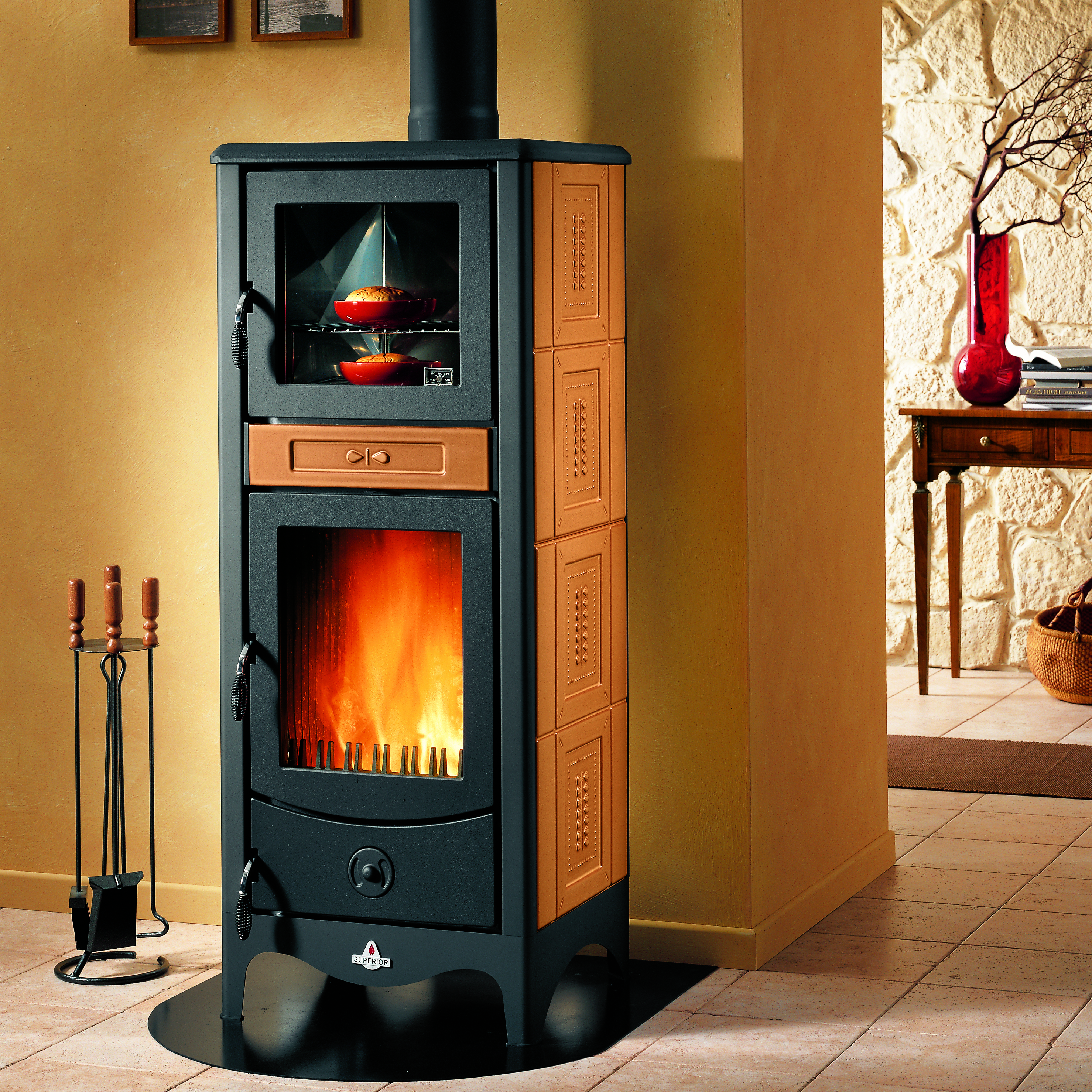 Stufa A Legna Superior Modello Manuela Maiolica E Ghisa